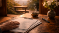 自分の部屋で、自分の机に向かい、
